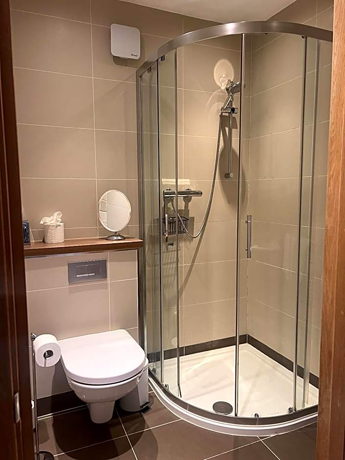 This soundproofed room features a super king-size bed and an en suite shower room with underfloor heating and a hairdryer. The room also offers free Wi-Fi and a flat-screen TV.